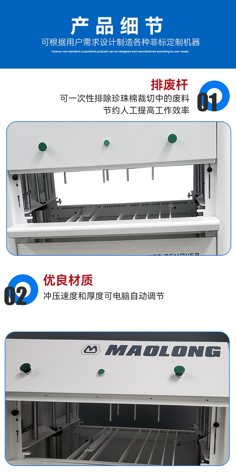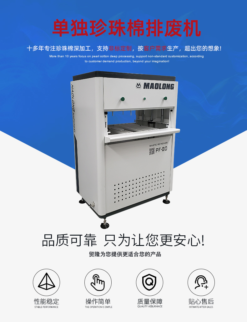 1.珍珠棉冲裁一体机一次冲压成型排废,省掉二次人工排废;